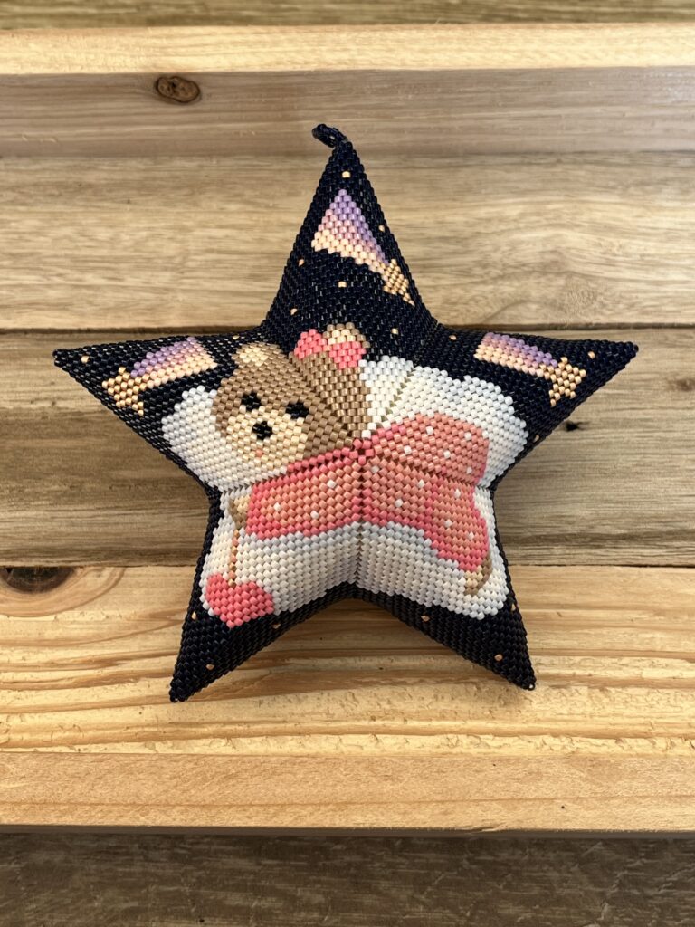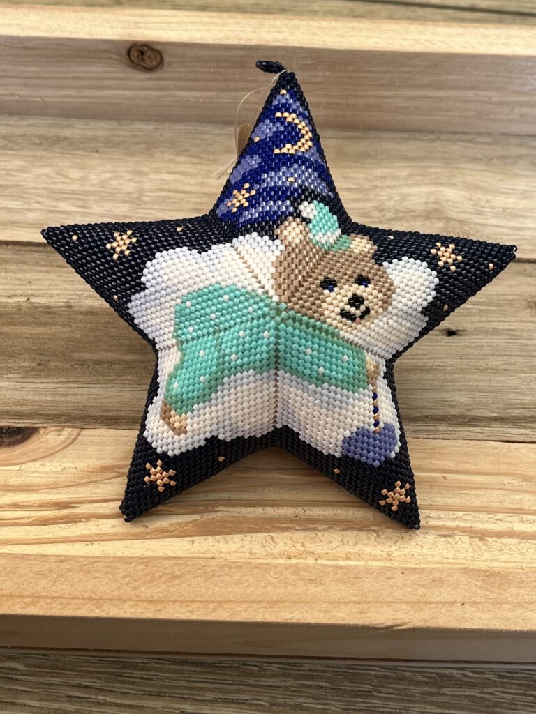 De (kerst)sterren zijn natuurlijk een blikvanger voor in de kerstboom maar ook heel geschikt om te decoreren. Je kunt ze ophangen maar bijvoorbeeld ook in een schaal schikken. Mijn advies is wel om de sterren niet in de volle zon te hangen of leggen. Er is dan een kans dat de kraaltjes verkleuren. De sterren zijn gemaakt van heel veel kleine kraaltjes, delica’s genaamd. Deze kralen zijn door Miyuki (een Japans kralenmerk) geproduceerd en staan bekend om hun gelijkmatigheid. Hierdoor kun je mooie strakke sterren maken.